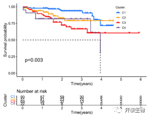 (图3:ICGC队列4种亚型的生存分析)