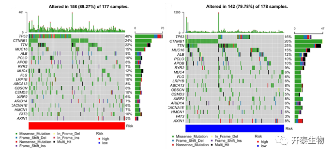 (图6:高得分组基因突变分析;低得分组基因突变分析)