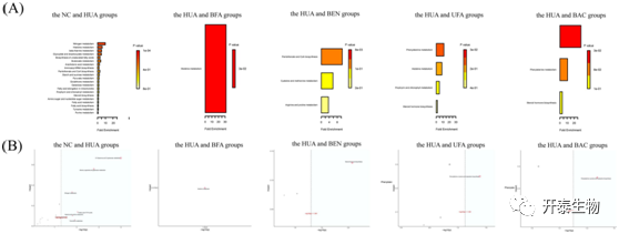 肠道微生物群结构分析表明与NC组相比,HUA组肠道菌群结构和组成发生了显著的变化,与HUA组相比,BFA组厚壁菌门相对丰度降低,拟杆菌门相对丰度升高。
