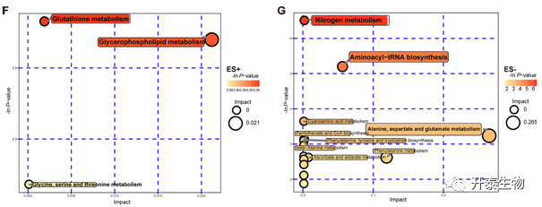 如图2所示,失眠组有5个代谢途径与健康对照组有明显差异:甘油磷脂代谢;谷胱甘肽代谢; 氮代谢;丙氨酸、天冬氨酸和谷氨酸代谢;氨酰-tRNA生物合成。