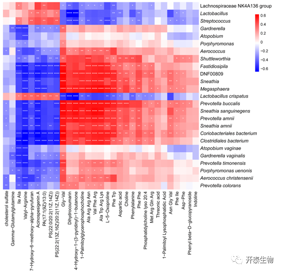作者分析了各种代谢物与肠道微生物群之间的相关性(图5)。大多数在失眠组中显著增加的代谢物与增加的肠道细菌呈正相关,而与失眠组中显著减少的肠道细菌呈负相关,反之亦然。这表明代谢的变化可能部分是由于肠道微生物群导致的。失眠组血清中许多氨基酸和短肽减少,如天冬氨酸、 苯丙氨酸等,大多数与失眠组肠道菌群中显著减少的普雷沃氏菌属呈正相关,这表明普氏菌可能通过促进宿主体内相关氨基酸的产生而发挥保护作用。