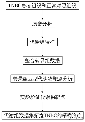 三阴性乳腺癌(TNBC)是一种高度异质性疾病,且缺乏公认的治疗靶点。在之前针对中国TNBC患者的研究中将TNBC分为四种具有不同分子特征的转录组亚型(BLIS,IM,MES和LAR),并揭示了每个亚型的潜在治疗靶点。然而,在雨伞试验(Umbrella trial)中潜在靶点的治疗效果并没有达到预期。代谢重编程是癌症的重要标志,先前的研究已表明不同类型的乳腺癌之间代谢途径存在显著差异。目前,仍然缺乏将TNBC代谢组学与基因组学联系起来的研究。在本研究中,作者将代谢组学与之前基因组和转录组学数据相结合,以探索TNBC的潜在代谢靶点。