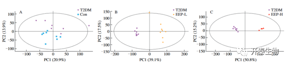 本研究分析了EPP对T2DM小鼠血清生化指标、肝脏病理学和粪便代谢组的影响,鉴定了多种T2DM代谢标志物,从代谢组的角度阐明了EEP治疗T2DM的潜在机制,为EPP的临床应用和T2DM的治疗提供了新的方向。