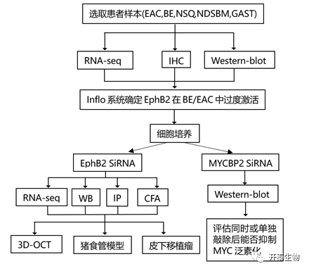 总之,该研究确定EphB2信号在BE-EAC连续体中经常过度激活,EphB2是BE-EAC病理生物学的潜在关键决定因素,其作为MYC的上游调节因子,EphB2-MYC轴的激活可能先于BE的发展。靶向EphB2 / MYC可能是这种通常难治性和侵袭性癌症的一种有前途的治疗策略。