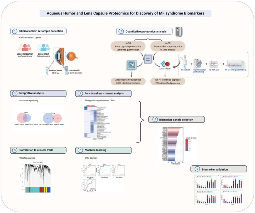 晶状体异位是马凡综合征 (MFS) 的一个标志,马凡综合征是一种遗传性结缔组织疾病,影响全世界 1/5000 至 1/10000 人。眼科诊所及早发现心血管并发症并及时干预可以挽救生命。房水(AH)是一种透明液体,滋养眼前段的无血管组织,对于许多生理功能至关重要。AH采样和分析在临床实践中经常用于帮助眼部疾病的诊断和治疗。