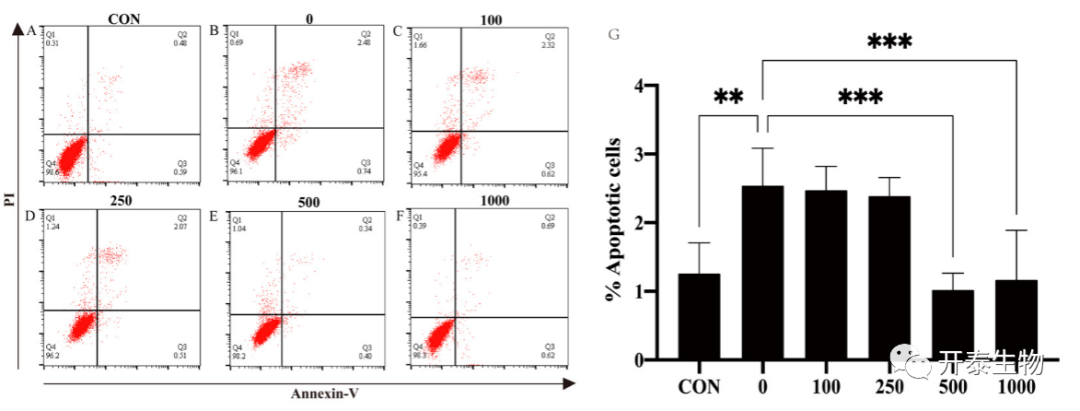 为了进一步研究MT是否能保护由H2O2诱导的PTr2细胞凋亡,使用流式细胞术评估凋亡率。结果表明,H2O2处理下,细胞凋亡率显著高于对照组,而MT预处理后,H2O2诱导的PTr 2细胞凋亡率显著降低(图2)。