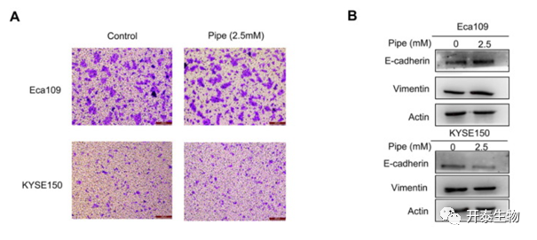 图8:哌可酸对ESCC细胞迁移和EMT蛋白标记表达的影响