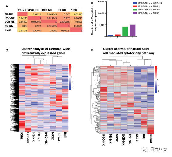图5 RNA测序分析UCB56 NK,iPSC NK,PB-NK等细胞系的基因表达