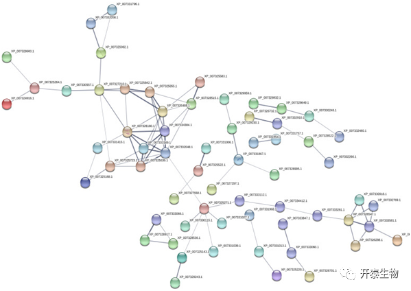 和CK组相比,在ND组中筛选了187个差异表达蛋白(DEPs),其中74个上调,113个下调(图2)。GO分析表明,DEPs主要富集到代谢和单组分过程、细胞和细胞部分以及催化活性和结合(图3)。KEGG分析表明,DEPs显著富集到74条通路。蛋白互作网络分析表明,XP-007327210.1、XP-007325842.1、XP-007325855.1、XP-007328515.1、XP-007326488.1、XP-007326180.1、XP-007334384.1、XP-0073315491.1、XP-007332048.1、XP-007325723.1、XP-007325639.1、XP-007325271.1、XP-007326547.1和XP-007333581.1的连接度最高,是网络中的关键蛋白。这些关键蛋白中,除了XP-007325271.1是一种酰基载体蛋白/NADP泛醌氧化还原酶(ACP)之外,其他都是假设蛋白(图4)。