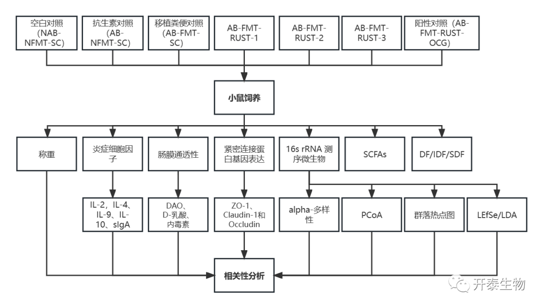 例如:AB-FMT-RUST-1:指经过抗生素处理后移植健康婴儿粪便,随后喂养15%燕麦、22.3%小米和22.7%玉米混合餐的小鼠。