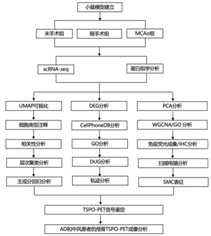 为了检测颅骨骨髓对脑损伤反应的参与,研究中团队使用了中大脑动脉闭塞(MCAo)小鼠作为研究中风的模型(图1A)。在 MCAo 中,小鼠首先进行颈部切口以暴露颈动脉,然后再闭塞大脑中动脉(图 1 A)。没有 MCAo 的假手术模拟了局部损伤,但不会诱发中风。