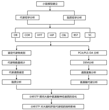 本项研究应用基于气相色谱-质谱法的代谢组学和脂质组学,涵盖了 797 种结构注释的代谢物,研究了禁食(3、6、12 和 24 小时)和自由进食条件下小鼠七个脑区的代谢组。使用多变量和单变量统计技术,生成了短期禁食(STF)后多个大脑区域的整体代谢特征动态的小鼠大脑代谢组图谱,确定了大脑区域之间显著的代谢差异以及 STF 触发的区域依赖性代谢重塑。他们发现 STF 会引起三酰甘油降解和脂肪分解,以补偿禁食条件下的能量需求。此外,还观察到氨基酸谱的变化,这可能在调节 STF 的能量代谢、神经递质信号传导以及抗炎和抗氧化方面发挥着至关重要的作用。此外,这项研究首次表明STF 会引发N-酰基乙醇胺(一类神经保护脂质,存在于大脑和肝脏中)的显著升高。这些发现为 CR 的分子基础和机制提供了新的理论依据。