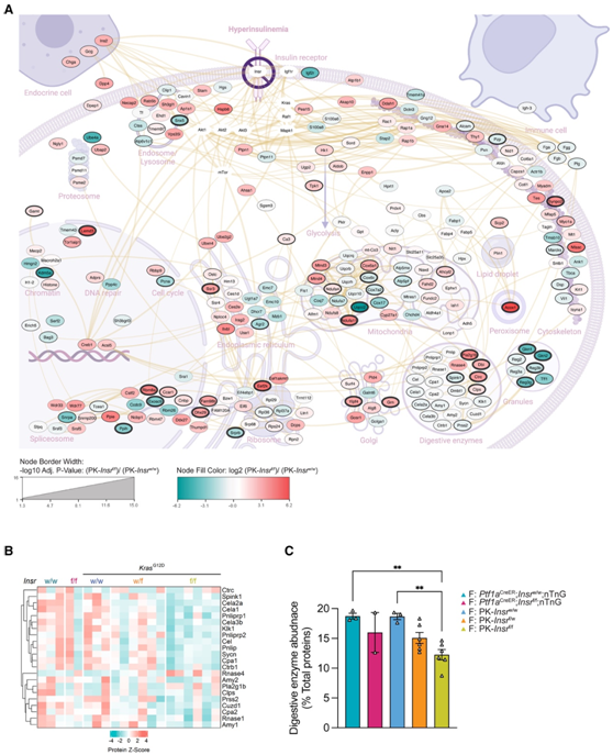 图4. 胰岛素受体对 PanIN 启动影响的蛋白质组学分析。
