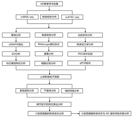 本项研究分析了 443 名人类受试者和不同AD病理表型的 194000 个单核小胶质细胞转录组和表观基因组,鉴定了 1542 个 AD 差异表达基因,包括小胶质细胞状态特异性和疾病阶段特异性改变。通过整合表观基因组、转录组和基序信息,推断出小胶质细胞状态的上游调节因子、基因调节网络、增强子基因链接和转录因子驱动的小胶质细胞状态转变。稳态激活因子的异位表达会诱导人 iPSC 衍生的小胶质细胞样细胞的稳态特征,同时抑制炎症激活因子可以阻止炎症进展。最后,确定了 AD 风险基因在小胶质细胞状态中的表达以及 AD 风险基因及其调节因子在 AD 进展过程中的差异表达。