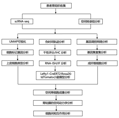 本项研究对人胃进行了scRNA-seq和亚细胞水平的空间转录组学分析,并构建了迄今为止最大的数据集:胃百科全书。该数据集由来自 scRNA-seq 和空间转录组的约 380000 个细胞组成,能够对胃细胞和化生细胞的转录和空间信息进行综合分析。该分析将LEFTY1鉴定为从未表征过的干细胞标记物,并通过谱系追踪分析得到证实。上皮细胞和基质细胞之间的多种细胞间相互作用,包括 PDGFRA + BMP4 + WNT5A +成纤维细胞,在肠化生的发育转换中具有重要作用。