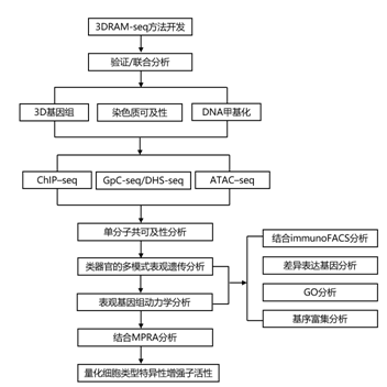 基因表达受到多种表观遗传机制的调节,这些机制在发育和疾病中相互协调。然而,当前的多组学方法通常一次仅限于一种或两种模式,这使得获得全面的基因调控特征具有挑战性。本项研究开发了一种方法-3D 基因组、染色质可及性和甲基化测序 (3DRAM-seq) ,该方法可以在全基因组范围内以高分辨率同时分析空间基因组组织、染色质可及性和 DNA 甲基化。