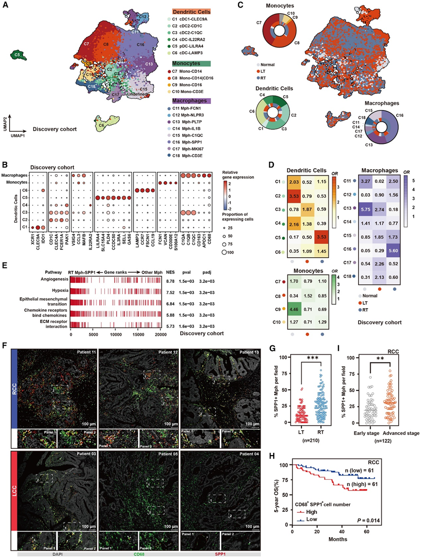 接下来,他们分析了人类肩峰下滑膜不同细胞类型中与衰老相关的差异表达基因(DEG)。在这些细胞类型中,SL-MSC 和 Mac 具有最多的衰老反应性 DEG(上调的 DEG 数量分别为 293、278,下调的 DEG 数量分别为 204、167)(图 2D)。这些老化 DEG 的基因本体论 (GO) 和功能富集分析表明,与年轻细胞相比,在老化滑膜中大多数已鉴定细胞类型中,与血管生成、对 TGF-β 的反应、淋巴细胞活化和胶原纤维组织相关的基因普遍上调(图 2E)。为了进一步评估老化滑膜中的纤维化状态,他们对纤维化相关基因进行了基因集评分分析,并观察到大多数已鉴定细胞类型中基因表达水平升高,尤其是在 SL-MSC 中(图 2F,图S2D)。此外,在八种已鉴定的细胞类型中,有六种细胞的纤维化标志物(例如COL1A2)的表达增强(图 2G)。COL1A2 的免疫组织化学染色和 Masson 三色染色进一步证实了老化滑膜内层和内层下层的纤维化增强,纤维化变化在内层下层尤为明显(图 2H-I)。具体而言,在 Mac 中,富集 FCERI 信号、TNF-α 信号和脂质储存调节的基因上调(图 2E)。与基因表达变化一致,观察到脂肪浸润是与滑膜老化相关的组织学变化(图 2J)。此外,与 Wnt 信号通路相关的基因表达在老化 EC 中特别上调,这与在老化滑膜中观察到的血管形成一致(图 2E)。此外,与老化滑膜中积累的衰老细胞的组织学发现一致(图 1D-E),基因集评分分析表明,衰老相关分泌表型相关基因的表达在各种细胞类型中普遍增加,尤其是在 L-MSC 和 Mac 中(图S2E-F)。滑膜样本的bulk RNA-seq 数据进一步证实了 FCERI 介导的 NF-κB 激活和免疫反应的激活(图S2G)。