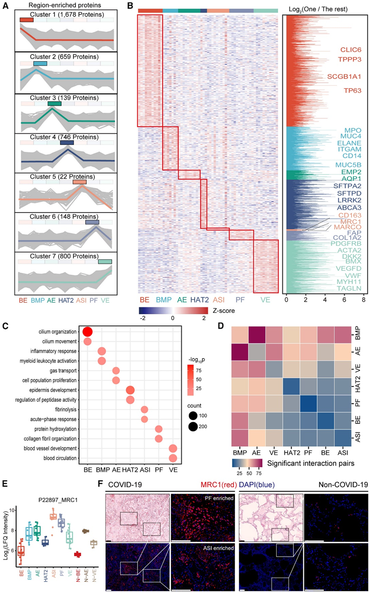 COVID-19肺部七个区域的空间蛋白质组和功能特征