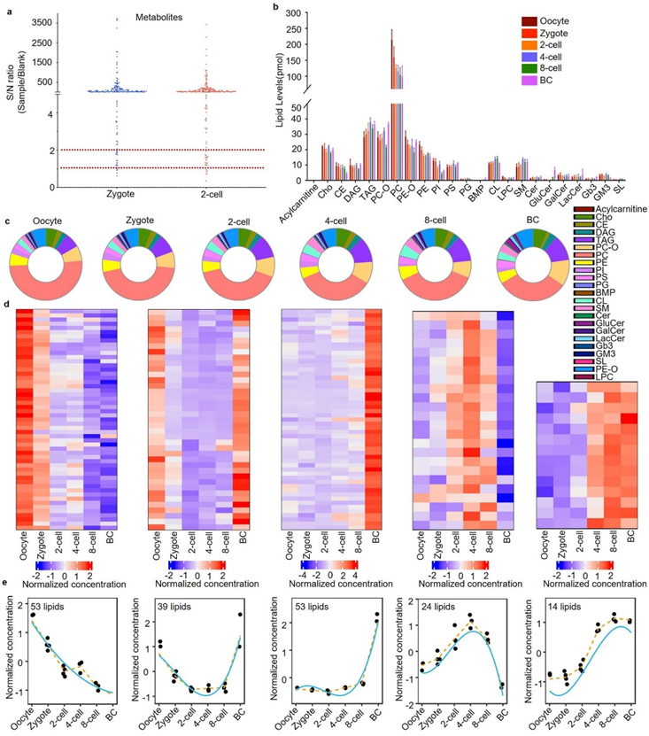 图1. 小鼠植入前胚胎发育阶段特异性脂质组学特征。