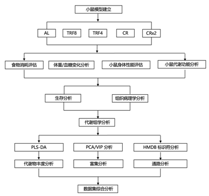 为了评估 CR 和 TRF 营养干预对维持健康和最终生存的能量成本的系统影响,他们首先使用相关矩阵确定代谢物和表型结果之间的相关强度。其次,生成了整体极地热图,描述了来自营养干预、能量学和 FI 的血清代谢组特征的层次聚类。第三,通过主成分分析 (PCA) 量化了营养干预与 AL 方案的相对影响及其程度,具体取决于模式,即 CR、CRx2、TRF4、TRF8。