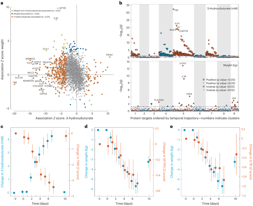 图4. 与血浆 3-羟基丁酸和体重变化相关的蛋白质。