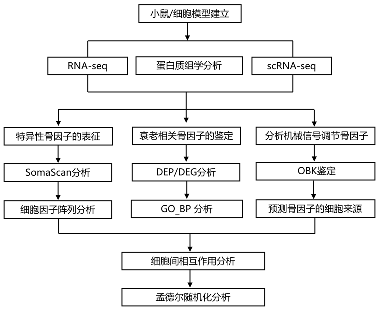 本项研究分析了骨和骨外组织、OB条件培养基、BMS和血清,以了解基础骨因子以及对衰老和机械加载/卸载有反应的因子。通过整合 RNA-seq、scRNA-seq 和蛋白质组学方法的数据,鉴定了 375 种候选骨因子及其响应衰老和机械动力学的变化。此外,分析了它们在骨骼中的细胞来源以及它们促进的器官间通讯(骨脑、肝脏和主动脉)。值得注意的是,衰老的 OB 会分泌FABP3,从而向VSMC传播衰老。总而言之,本项研究确定了以前未知的候选骨因子,并在它们之间建立了动态调节网络,从而为进一步研究它们的系统作用提供了新的理论依据。