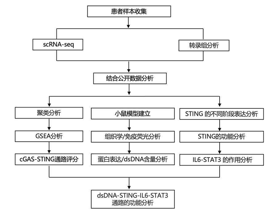 本研究证明 cGAS-STING 信号参与了 BAS,伴随着 dsDNA 的增加、STING 的表达和激活。STING 抑制或缺陷可通过减少急性和慢性炎症有效缓解 BAS 小鼠的气管纤维化。巨噬细胞耗竭也能有效改善 BAS。从机制上讲,受损上皮细胞的 dsDNA 激活巨噬细胞的 cGAS-STING 通路并诱导 IL-6 激活 STAT3 并促进纤维化。总之,目前的结果表明 cGAS-STING 信号诱发急性炎症并增强与良性气道狭窄相关的慢性炎症和气管纤维化,突出了 BAS 的机制和潜在的药物靶点。