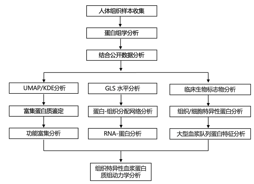 组织会产生组织特异性的蛋白质组,包括组织富集的蛋白质和在许多不同细胞和组织中普遍产生的蛋白质。这些蛋白质组协调着不同器官和器官系统中执行的组织特异性功能和基本细胞功能。与组织和细胞不同,血浆中没有蛋白质合成。血浆蛋白质组由周围器官和细胞中蛋白质的流入和流出维持。为了定量不同器官和细胞在健康和患病状态下对血浆蛋白质组的影响程度,研究团队开发了一种基于质谱的蛋白质组学平台,以推断人体血浆中检测到的蛋白质的组织来源。