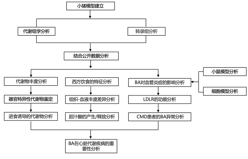 本研究利用动静脉代谢组学和转录组学分析,在猪的多种病理生理条件下,构建了10个跨器官代谢物生成和消耗的图谱,这些图谱涵盖了禁食/进食、西方饮食以及低密度脂蛋白受体缺陷诱发的心血管疾病进展,发现了许多器官存在进食依赖性和不依赖性的代谢物生成和消耗的情况,并提出了西方饮食通过改变代谢物浓度梯度和激素来干扰这些代谢物的机制。西方饮食和LDLR缺陷都会触发肝外器官释放BA,这可能导致循环BA水平异常升高,并由此引发血管炎症和动脉粥样硬化。这些数据揭示了病理生理条件下复杂的器官间代谢相互作用,为饮食影响和心脏代谢疾病提供了生化见解。