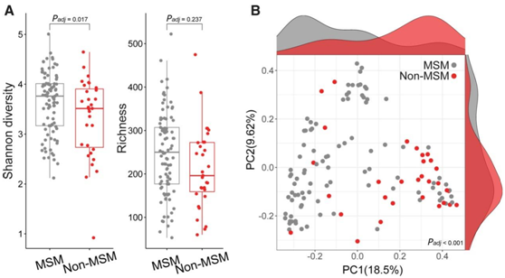 图1. MSM 和非 MSM 的肠道微生物群落结构。