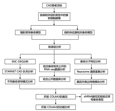 本项研究将 10 个实验性衰老细胞模型的转录组与基于约 600 名冠状动脉疾病 (CAD) 患者的 7 个组织活检的 RNA-seq 数据的 224 个多组织基因共表达网络进行了整合,鉴定了 56 个与衰老相关的模块,其中许多富含 CAD GWAS 基因并与心脏代谢特征相关,这证明了衰老基因程序在跨组织和 CAD 中的普遍性。跨组织网络分析揭示了 86 个候选衰老相关分泌表型 (SASP) 因子,包括 COL6A3。COL6A3 的实验性敲除会诱导与大多数实验性衰老模型重叠的转录变化,其中细胞周期停滞与 DREAM 复合物靶向基因的调节有关。本项研究提供细胞衰老的转录组数据,并鉴定了候选生物标志物、SASP 因子和人体组织衰老的潜在驱动因素。