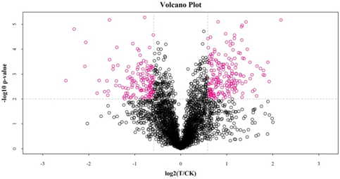 该团队从对照组(CK)和Cd2+、Zn2+处理(T)的水稻根系提取的PM蛋白样品中共鉴定到14326个独特肽段和4008个蛋白质,其中2997个为DEPs,占鉴定到的总蛋白质的74.8%。与对照组相比,当T/CK的比值大于1.20或小于0.83时,共有514个DEPs,占鉴定到的DEPs的17.2%。然而,当T/CK的比值大于1.50或小于0.66时,有332个DEPs,占鉴定出的DEPs的11.1%,其中192个DEPs在Zn/Cd处理中与对照组相比上调,140个下调。利用各组样品之间蛋白表达量的差异倍数和T检验得到的P值共同绘制火山图,用来表征CK与处理组之间的显著性差异(图 1)。
