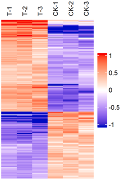 对不同处理的DEPs进行系统聚类分析,结果如图2所示。分析的6个样品包括CK和处理组(T)的各3个重复。从图2可以看出,CK和Zn处理样品的每3个重复分别聚类在一起,具有较高的可重复性。同时,在水稻根系中,CK和Zn处理样品的蛋白质表达丰度和表达水平的多样性具有显著差异。