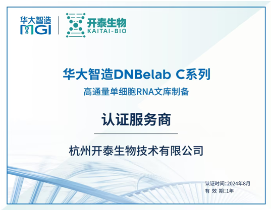 官宣|开泰生物获华大智造DNBelab C系列 单细胞测序服务商认证
