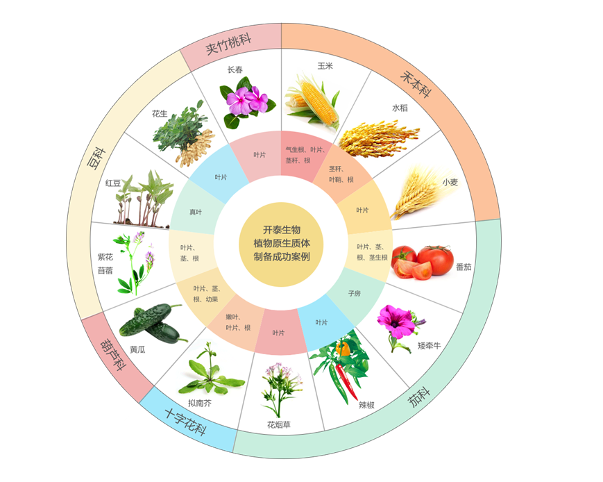 截至目前,开泰已成功解离近千例植物组织样本,包含近百个物种的多种组织,拥有丰富的植物原生质体制备经验。