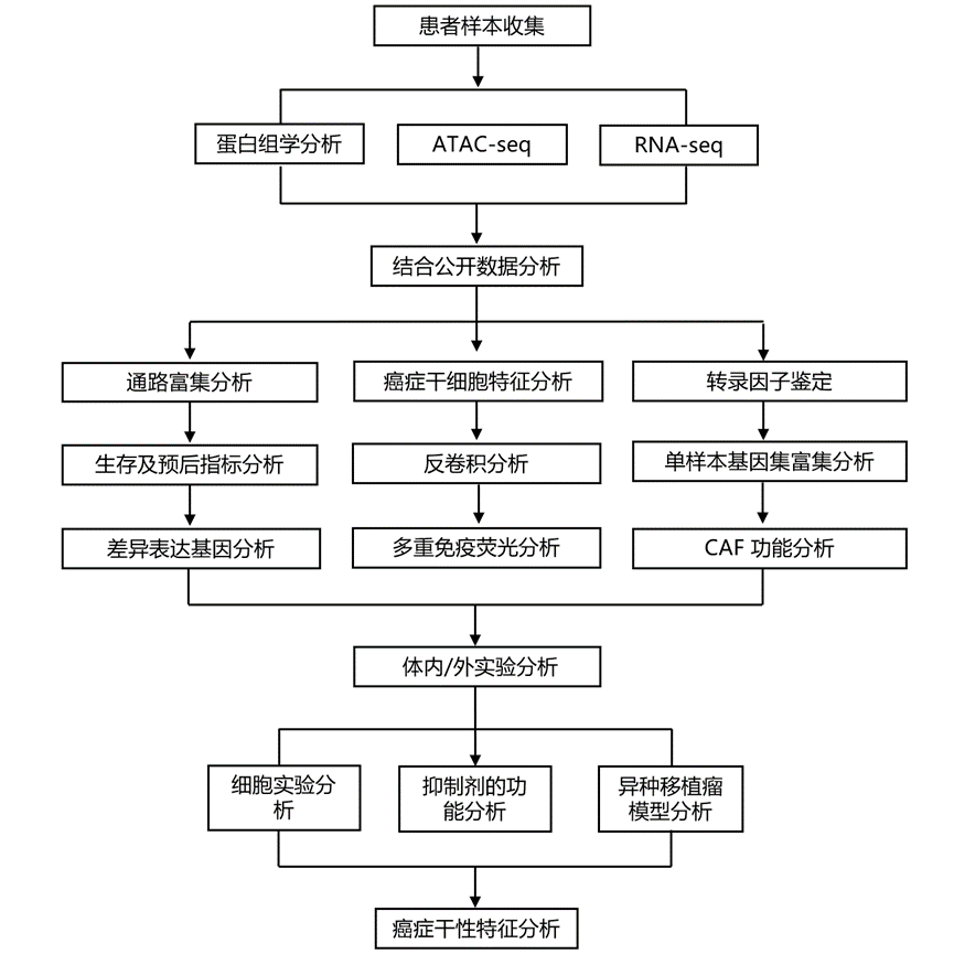 本研究利用多组学技术对肿瘤组织进行整合分析。基于转录组学,在衍生队列中发现了三个总体生存率存在显著差异的亚组,并在一个独立队列中验证了这些发现。利用RNA-seq和蛋白质组学进行的深入生物信息学分析表明,CAF对癌症干细胞特性的促进作用可能是高危HCC患者出现负面生物学特征的原因。ATAC-seq 识别出了调控转录的关键因子,这些因子可能在CAF浸润和干细胞特性之间架起桥梁。最后,本研究证明 CAF 衍生的 CXCL12 通过 CXCR4 促进 XRCC5 来维持 HCC 细胞的干性。
