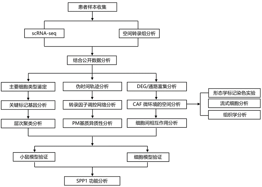 本研究构建了一个涵盖15种组织和实体瘤的成纤维细胞分子图谱,通过整合研究意外地揭示了大多数癌症类型中存在两种不同的apCAF群体:一种与间皮样细胞相关,另一种与纤维细胞相关。利用高分辨率单细胞空间成像平台,本研究对这些apCAF群体的空间微环境进行了表征。间皮样apCAF位于癌细胞附近,而纤维细胞样apCAF则与富含淋巴细胞的微环境相关。此外,本研究还发现这两种apCAF群体均可上调SPP1的表达,而SPP1能够促进原发肿瘤的形成、腹膜转移和治疗耐药性。综上所述,本研究在分析apCAF及其空间生态位方面提供了新的理论依据。