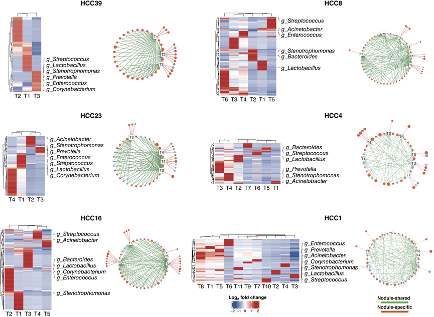 图2. 多灶性肝细胞癌中的异质性微生物群落。